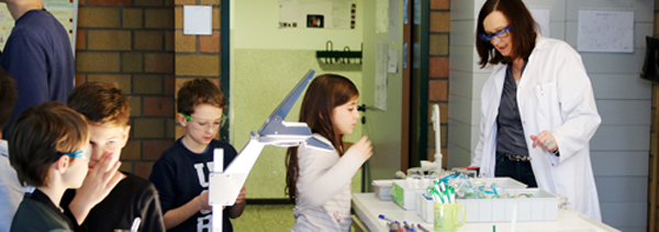 Dabei erhielten die Kinder einen Einblick in die Fachbereiche Informatik, Erdkunde, Sport, Kunst, Chemie und Physik. Lehrer, Lehrerinnen und Schüler des Gymnasiums boten Projekte in ihren Fächern an, um den „Kleinen“ einen Vorgeschmack auf das Lernen an der weiterführenden Schule zu geben. Ungefähr 90 Grundschüler nahmen an jeweils zwei Projekten teil und begaben sich auf Entdeckungsreise in neue Lernwelten.