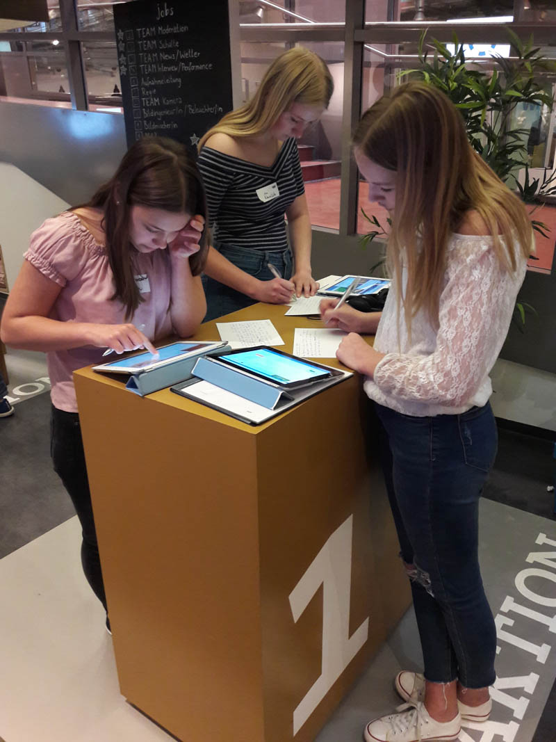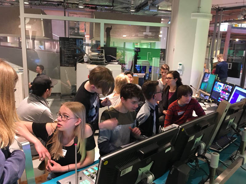 Die Klasse 8a war am 4. Mai im WDR STUDIO ZWEI und erlebte viel Neues. Dreieinhalb Stunden konzentrierte Arbeit in Teams und mit großem Spaß lagen vor ihnen. Dabei lernten die Schülerinnen und Schüler viele Berufsbilder kennen. Am Ende stand eine eigene kleine Sendung der 8a, in der es um Nachrichten und Informationen vor und hinter der Kamera ging – ohne Anspruch auf Perfektion und einfach nur mit Spass an der Arbeit mit Medien.