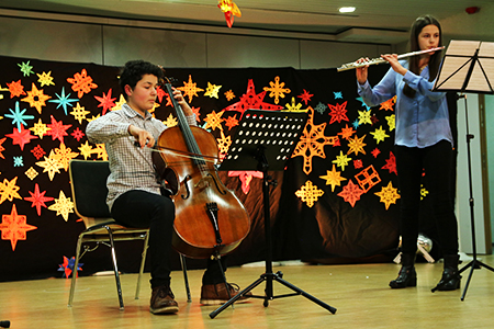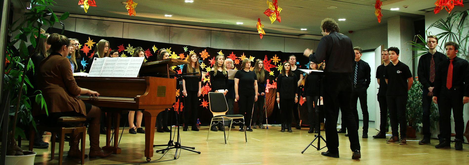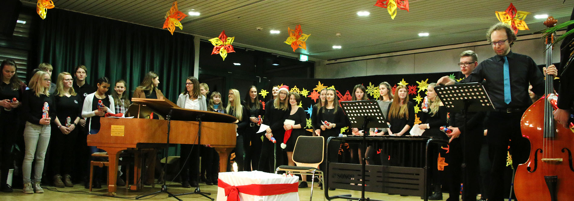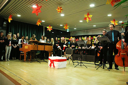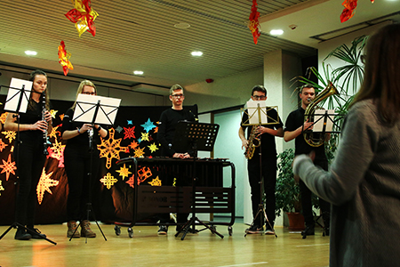 Am 21.12.2016 fand im Forum das traditionelle Weihnachtskonzert des GymLi statt. SolistInnen und kleine Ensembles präsentierten in weihnachtlich-ruhiger Atmosphäre Musik aus Barock, Klassik, Romantik und Moderne. Der musikalische Bogen spannte sich von Bach, Händel und Pachelbel über Schubert, Beethoven und Mussorgsky bis hin zu Film- und Popmusik. Die SchülerInnen musizierten am Klavier, mit verschiedenen Blasinstrumenten und Schlagzeug, auf dem Cello, singend und mit der Gitarre. Auch der Chor kam zum Einsatz und bat am Schluss um gesangliche Unterstützung durch das Publikum – damit alle weihnachtlich beseelt in die Ferien starten konnten.